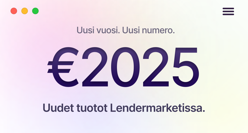 Vuodesta 2025 vuoteen 2026: Tee vuodenvaihteesta kannattava. Joka vuosi tapahtuu yksi pieni asia – numero vaihtuu.Hyvin pian vuosi 2025 vaihtuu vuoteen 2026. Tänä vuonna Lendermarketissa muutos näkyy paitsi kalenterissa myös palkkioissanne! Saat 26 euron bonuksen, kun